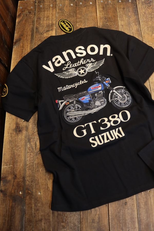 VANSON×SUZUKIコラボ SMV-2401 天竺半袖Tee GT380 サンパチ 刺繍Tシャツ ブラック