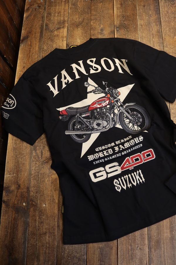 VANSON×SUZUKIコラボ SMV-2404 天竺半袖Tee GS400 刺繍Tシャツ 湘爆 ブラック