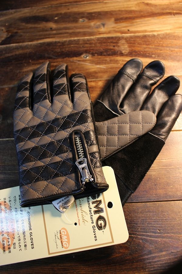 GMG ディンマーケット GMG-09 COW HIDE GLOVE レザーグローブ ボーダー チャコールグレー&ブラック