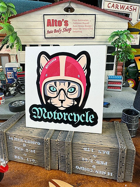 ホワイトヘブン オリジナル バイカー ステッカー (ヘルメットキャット/ダイカット)