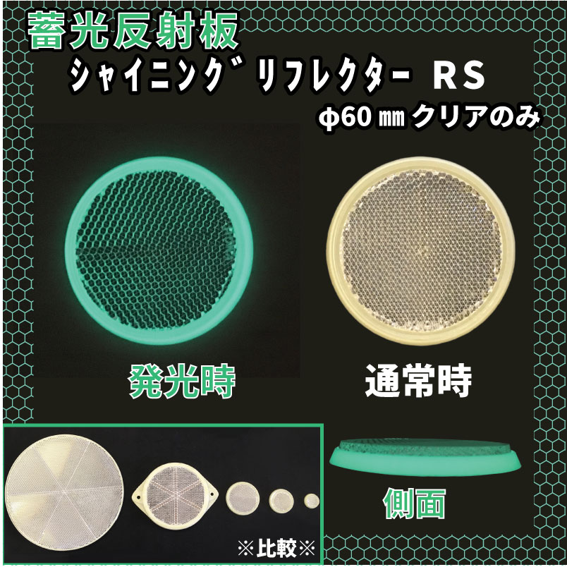 【新商品】 蓄光反射板 シャイニングリフレクターRS 丸型 直径φ60㎜ クリア