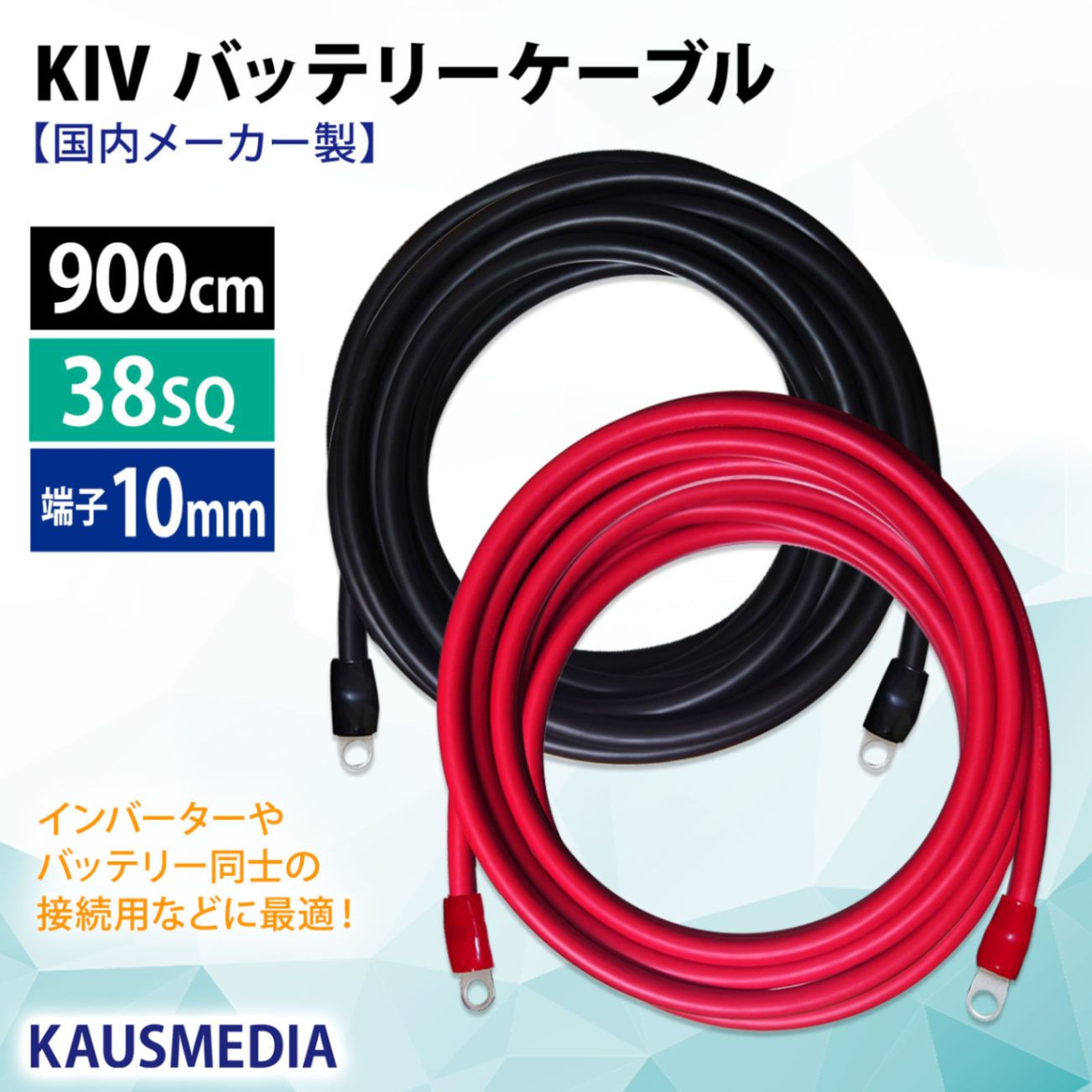 38SQ 9m KIV ケーブル R38-10S ニチフ 丸形圧着端子 10mm穴 絶縁キャップ 圧着 加工済 国内メーカー バッ...