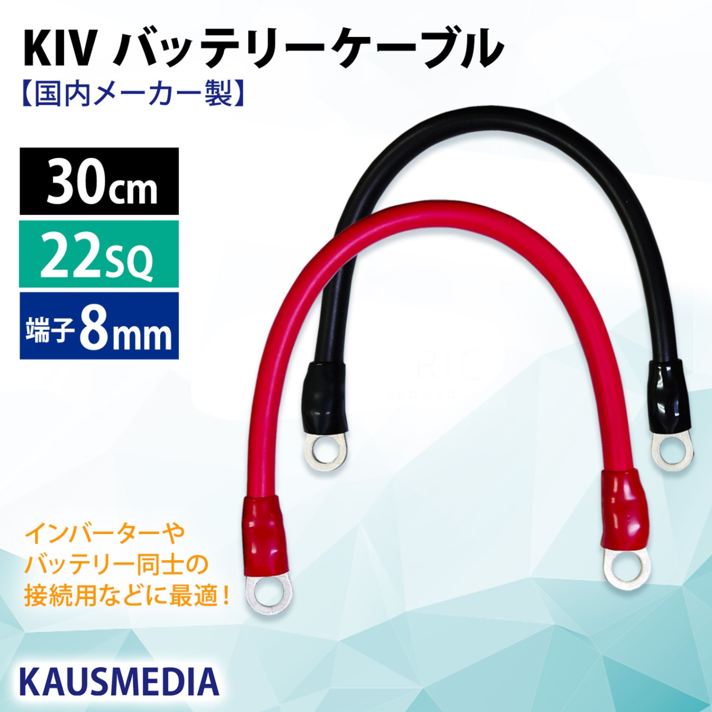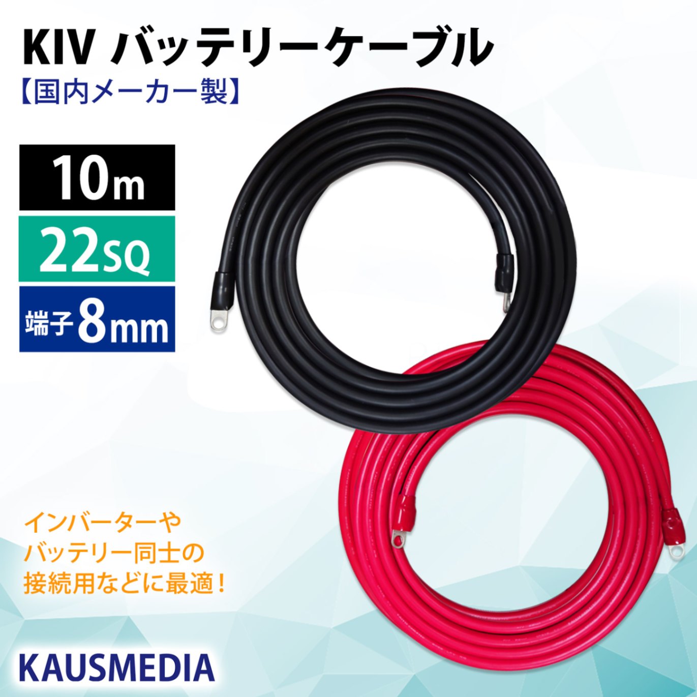 22SQ KIV バッテリーケーブル 30cm ニチフ 圧着端子8mm R22-8s 国内メーカー KAUSMEDIA バッテリー...
