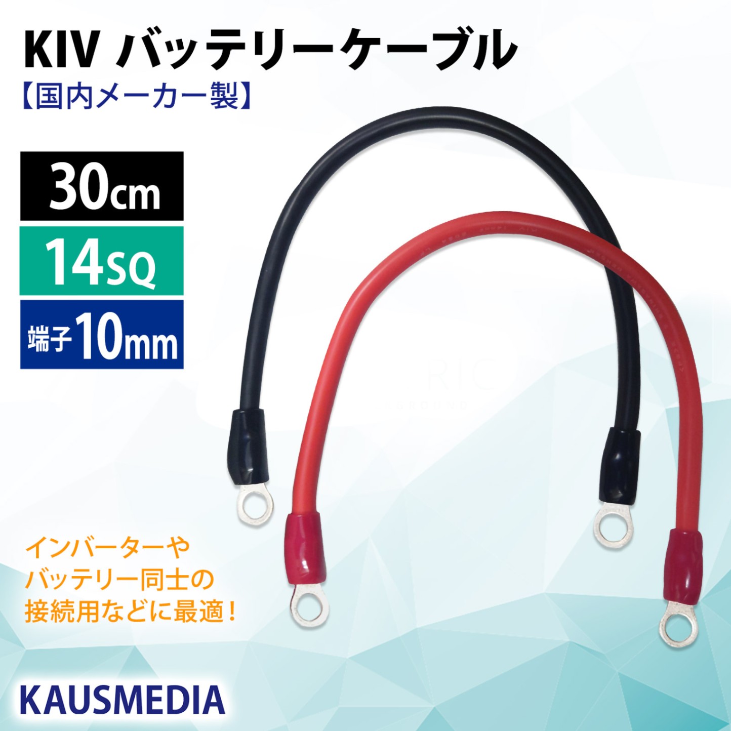 14SQ KIV ケーブル 30cm 10mm 丸形圧着端子付 バッテリーケーブル 国内メーカー KIV ニチフ R14-10 車...
