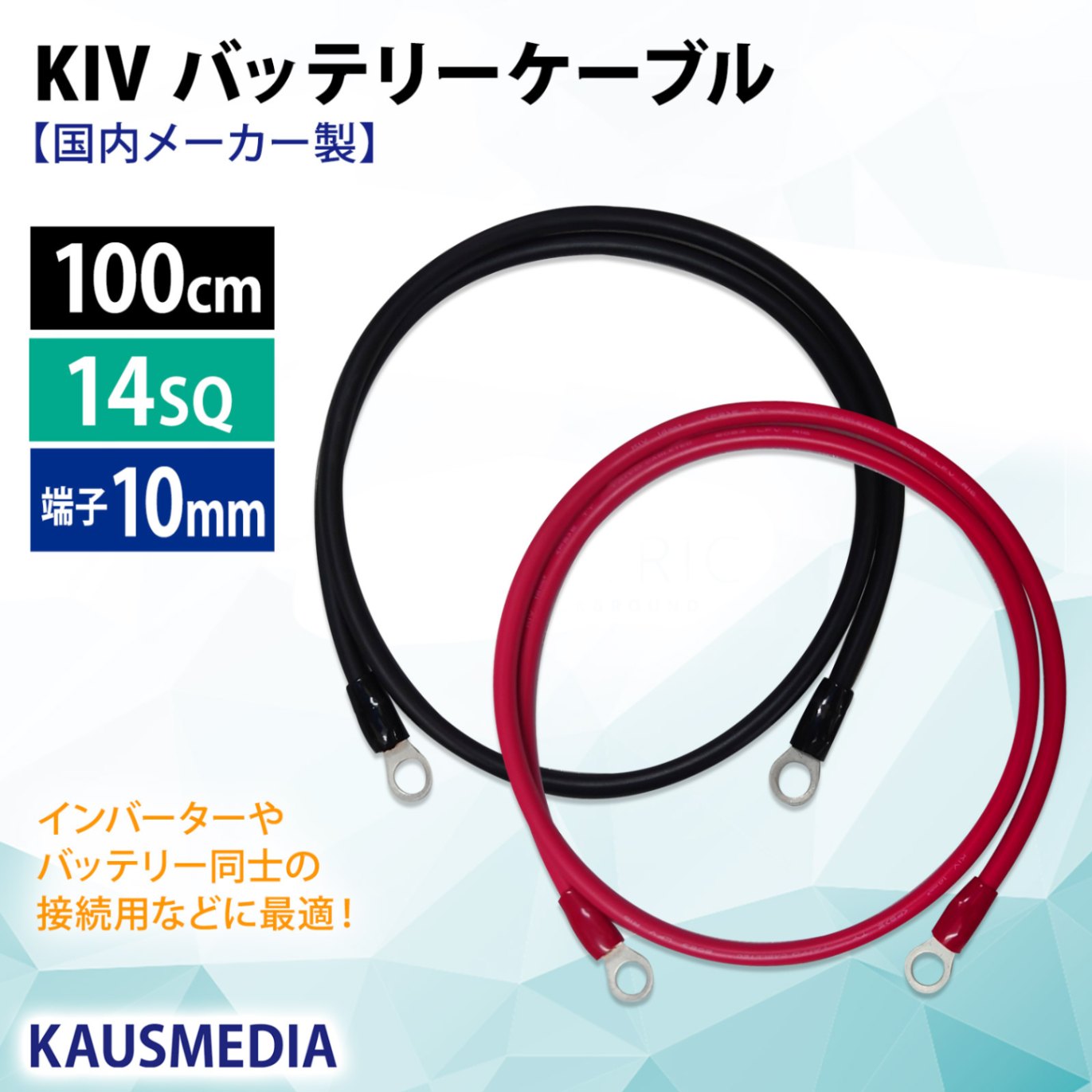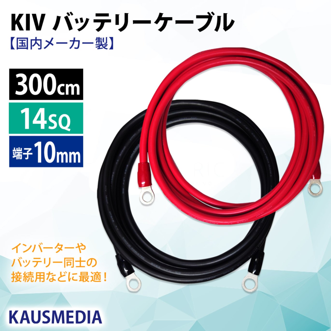 22SQ KIV バッテリーケーブル 60cm ニチフ 圧着端子10mm R22-10 国内メーカー KAUSMEDIA バッテリ...