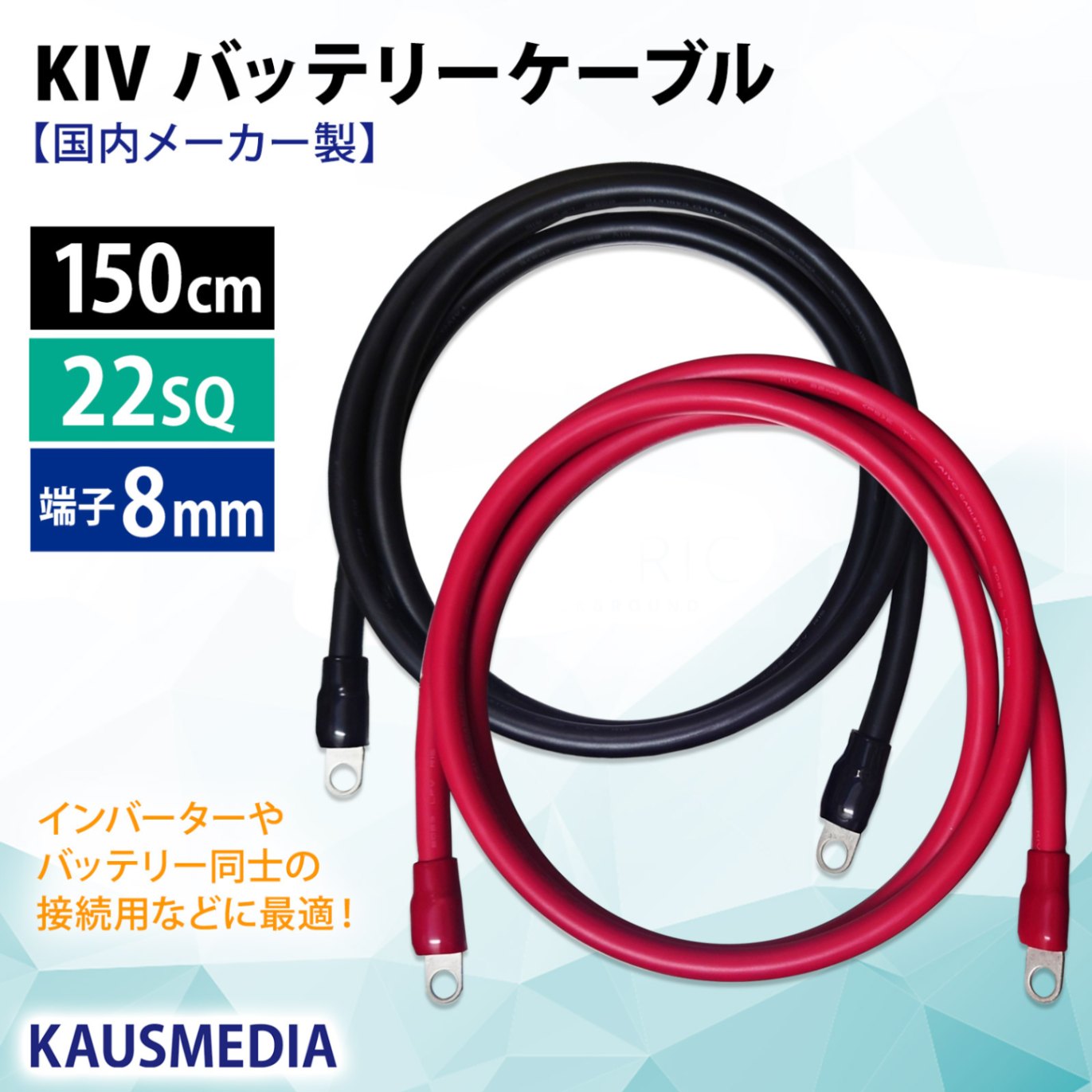 22SQ KIV バッテリーケーブル 150cm ニチフ 圧着端子8mm R22-8s 国内メーカー KAUSMEDIA バッテリ...