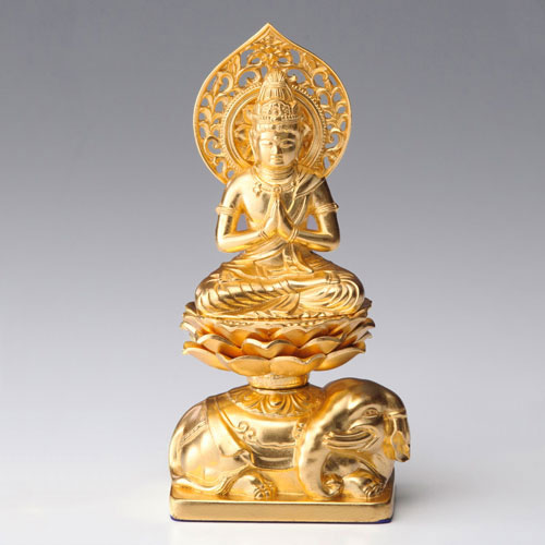 仏像・八体仏 高岡鋳物 普賢菩薩(金箔) 15cm (BZ-004-AGH) 辰・巳年生まれのお守本尊 インテリア鋳造仏 Cast...