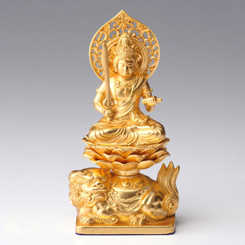 仏像・八体仏 高岡鋳物 文殊菩薩(金箔) 15cm (BZ-003-AGH) 卯年生まれのお守本尊 インテリア鋳造仏 Castin...