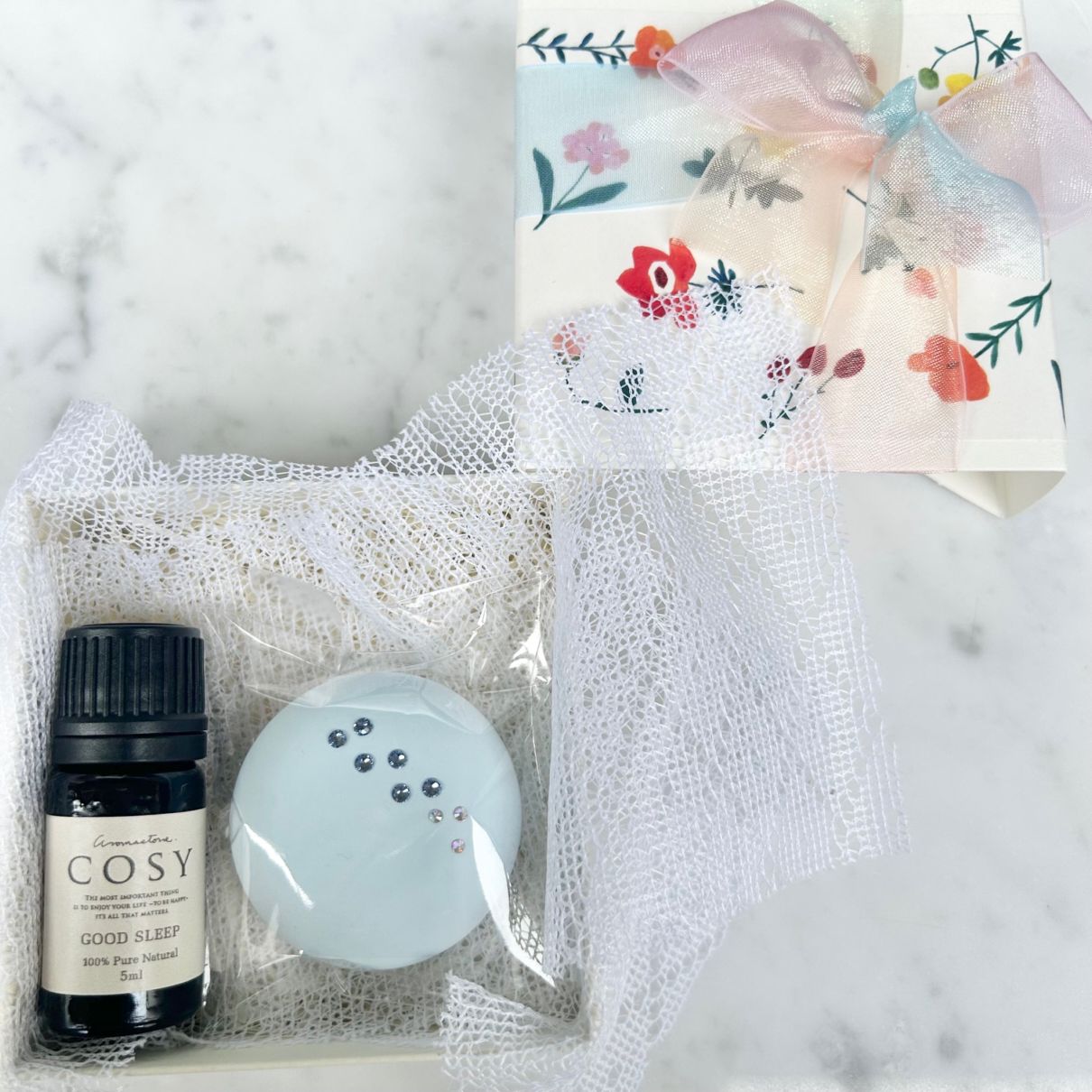 COSYアロマギフトセット マカロンブルー×GOOD SLEEP (小花柄BOX)