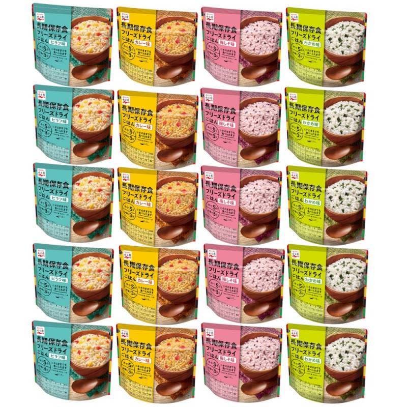永谷園 業務用災害備蓄用フリーズドライご飯 4種(わかめ味/梅しそ味/カレー味/ピラフ味)×5個 計20個セット 備蓄食 非常食