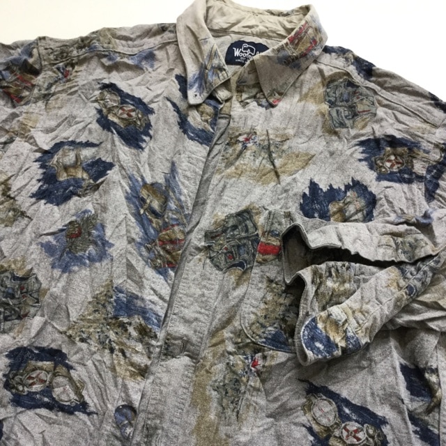 Woolrich ウールリッチ 長袖ネルシャツ アウトドア ビンテージ 送料無料 メンズ M程度/グレー 総柄 アメリカ直輸入 M...