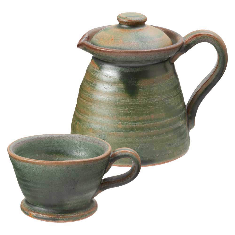 信楽焼 コーヒーポット+ドリッパーセット 緑 600ml 直火OK耐熱陶器 ガス火専用 滋賀県の工芸品 保温効果 陶器の赤外線効果...
