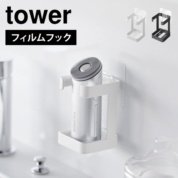 山崎実業 フィルムフックフェイシャルグッズ収納ラック タワー 1671 tower 洗面台 収納 吊り下げ 壁面 鏡面 貼り付け ...
