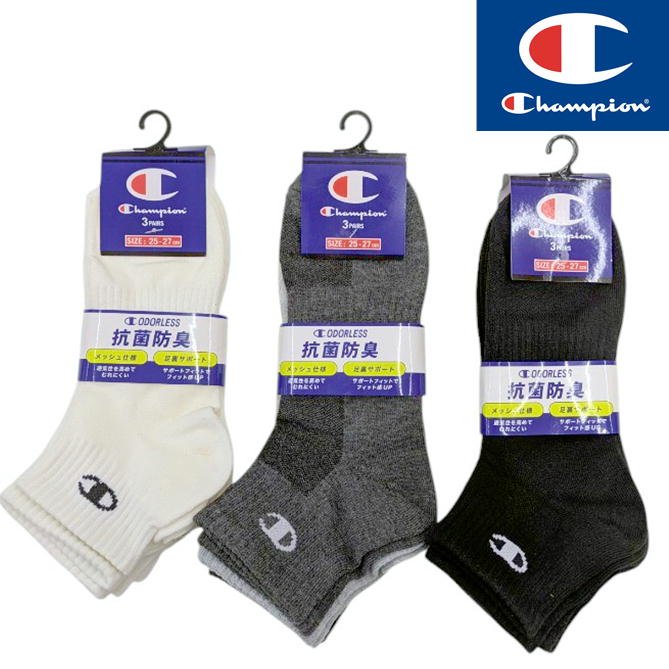 チャンピオン ソックス 3足組 ワンポイントロゴ デザイン 紳士 靴下 CHAMPION ブランド ショート丈 スニーカーソックス...