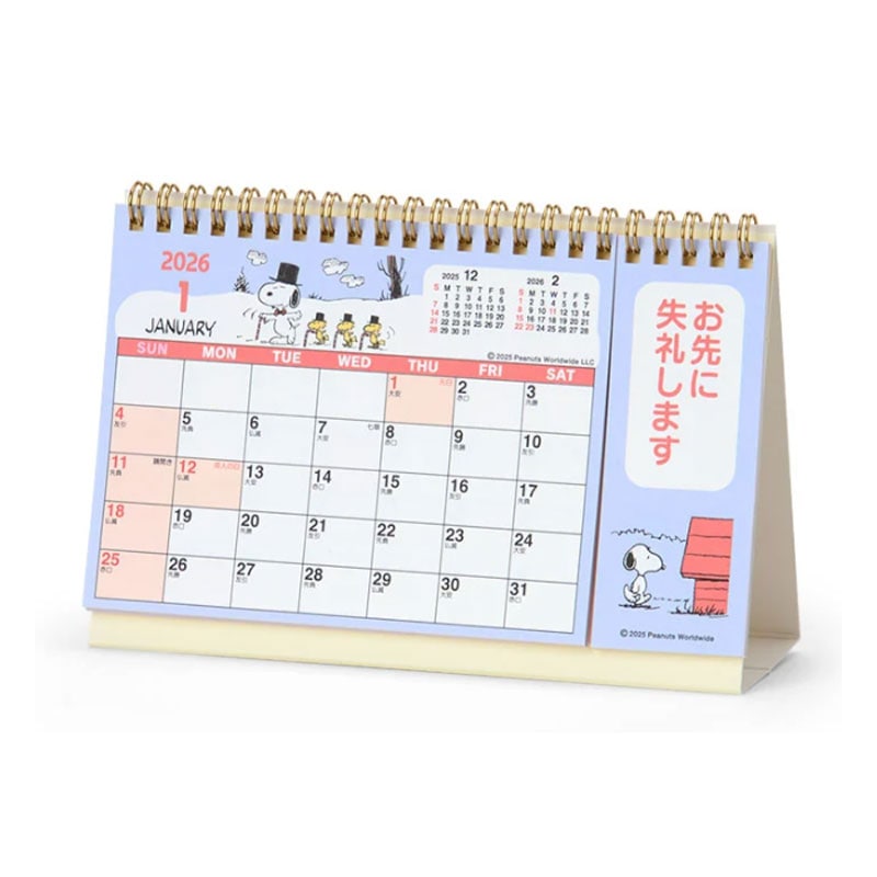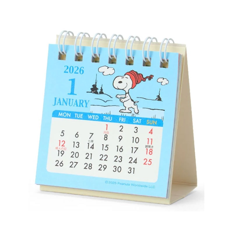 サンリオ 2026年 リングカレンダーS スヌーピー 卓上タイプ 日曜始まり 書き込みスペース付き