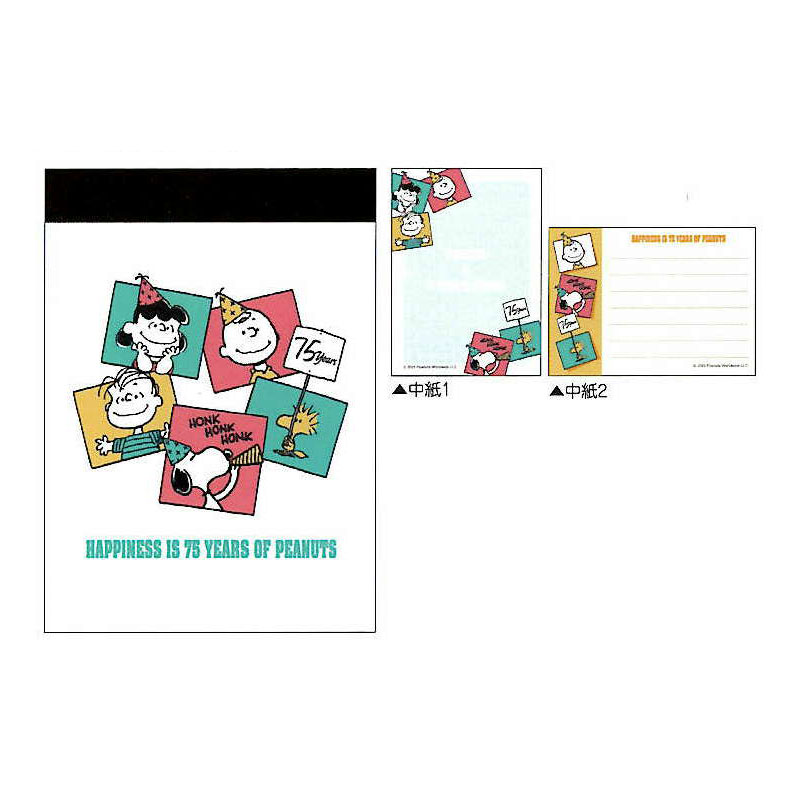 クラックス スヌーピー 75周年 ミニメモ パーティ 2柄 70枚 プレゼント グッズ