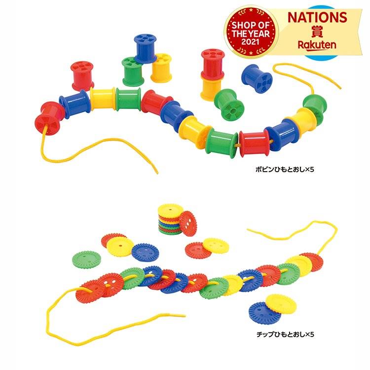 ボビン・チップひもとおし 2種×5個セット 子供 キッズ おもちゃ 幼児 知育玩具 室内 遊び ゲーム プレゼント 幼稚園 ...