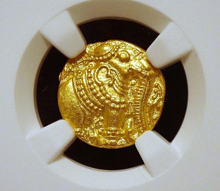 中世インド、ガンガ朝のパゴダ金貨MS63高鑑定