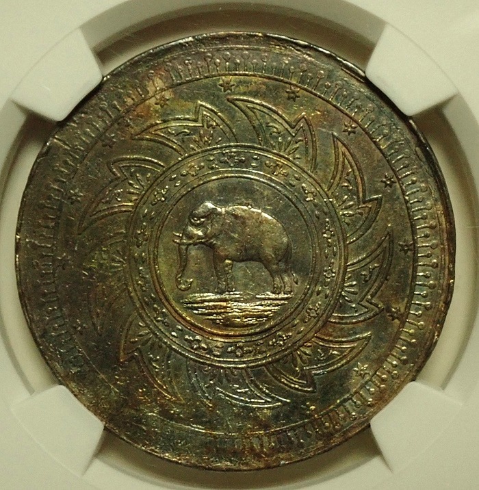 タイ1863年発行、2バーツ大型銀貨、ラーマ4世カラフルトーンKM-Y12