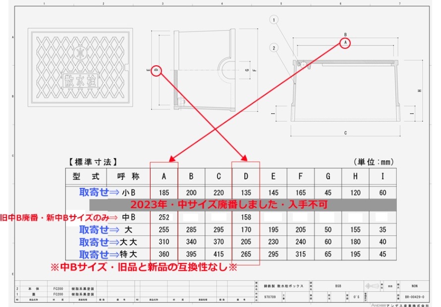 【ネコポス不可】【専用ページ】鋳鉄製散水栓BOX 小B用185サイズ BSB蓋(フタ)のみ