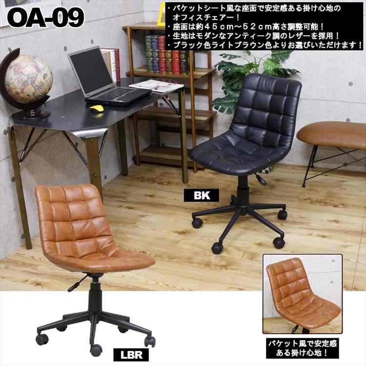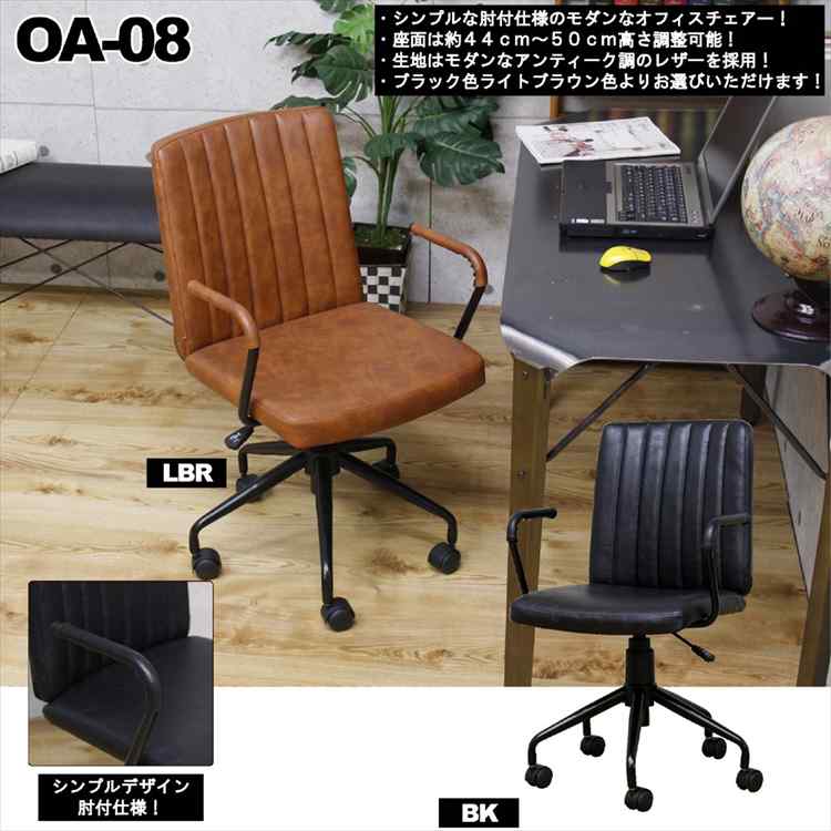 レトロなアンティークレザー調!肘付OAチェアー! オフィスチェア ライトブラウン ブラック PCチェア パソコンチェア キャスタ...