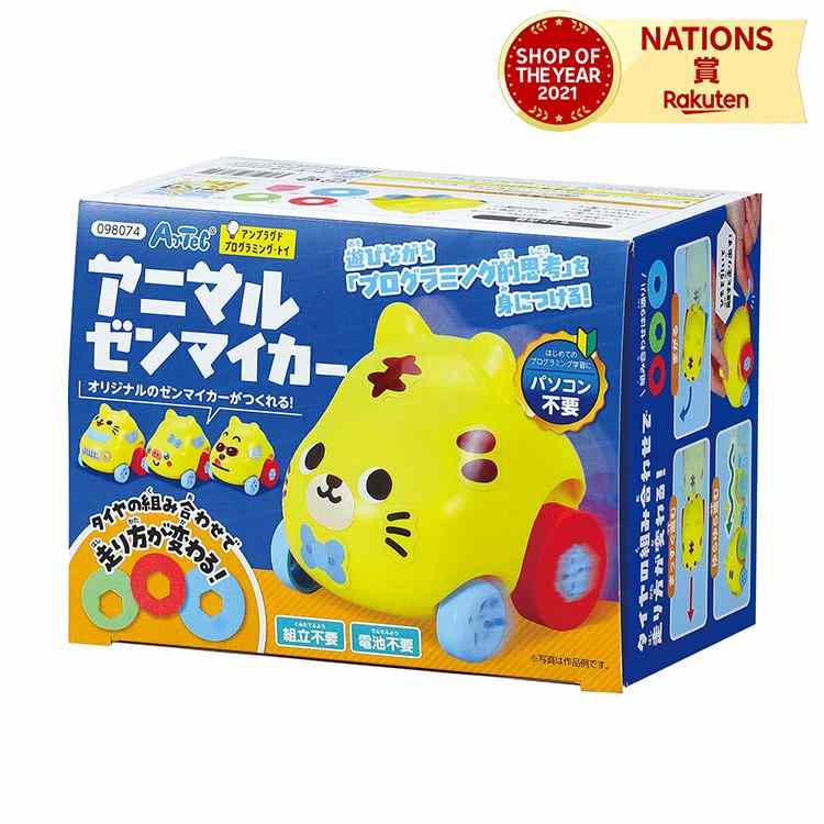 アニマルゼンマイカー かわいい どうぶつ型 プルバックゼンマイカー オリジナル シール36枚 電池不要 組立不要 パソコン不要
