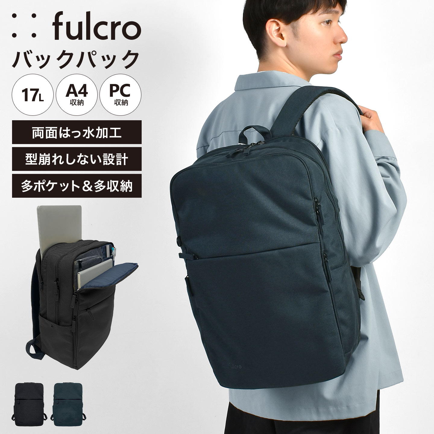 ビジネスリュック メンズ 大容量 薄型 撥水 軽量 17L A4 fulcro フルクロ Co-work fma-0035 ポケッ...