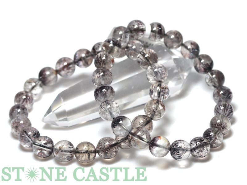 ☆高品質☆【ブレスレット】ブラックスーパーセブン (6A) (ブラジル産) (約8~8.5mm) (鑑別済) (ケース付)