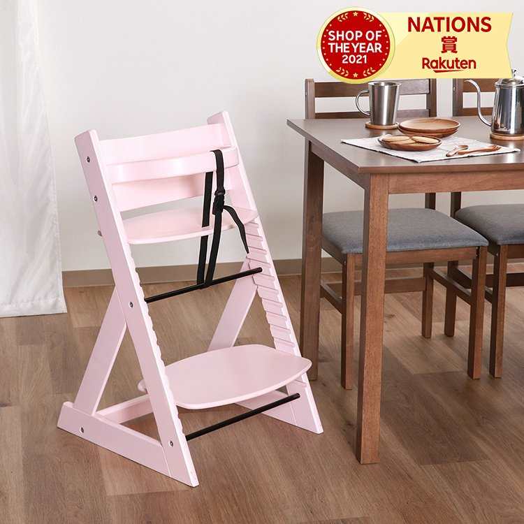 グローアップチェアー ペールピンク 不二貿易 ベビーチェア ハイチェア 子供椅子 セーフティベルト付き ダイニング 木製 ...