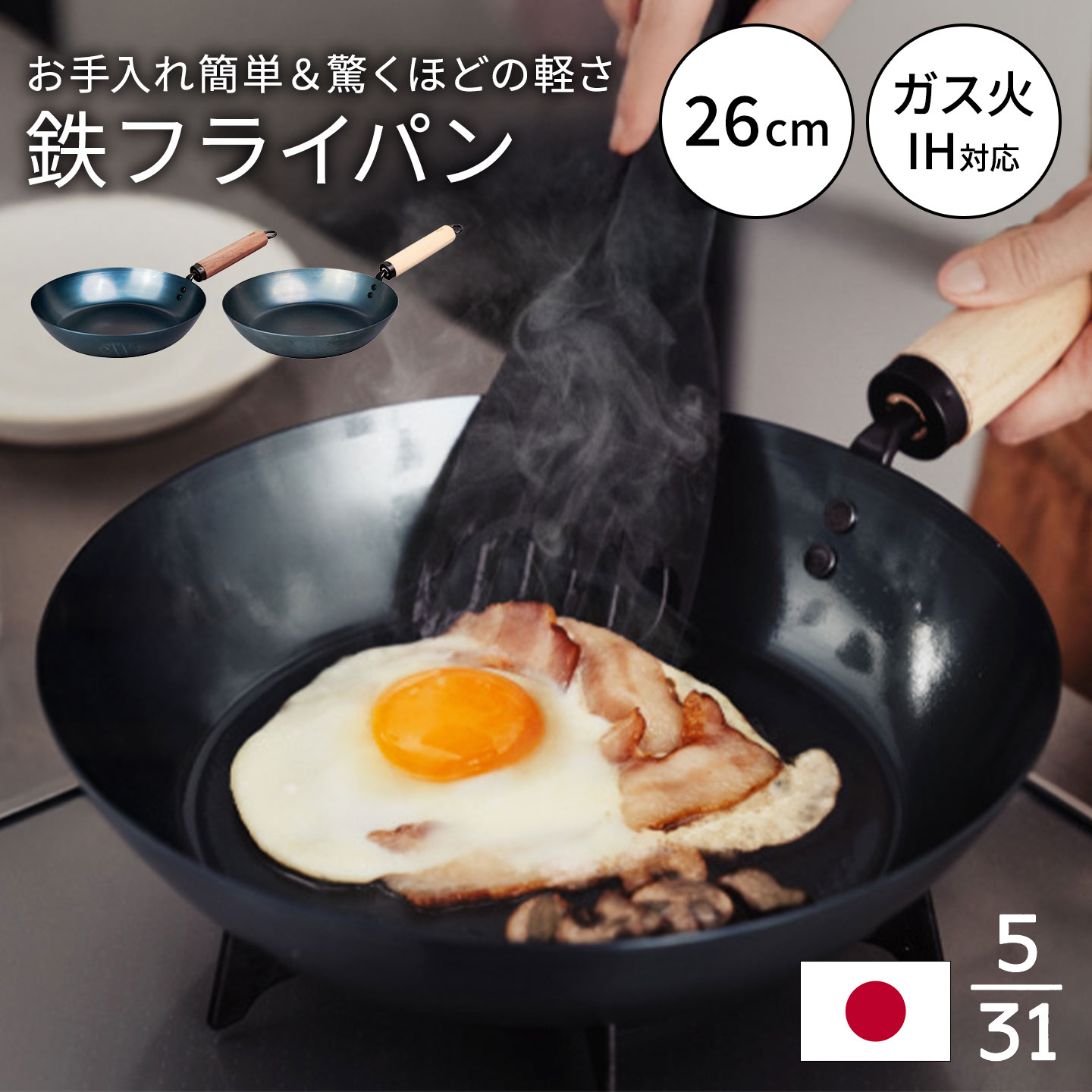 鉄フライパン 深型 IH ガス火 対応 藤田金属 FUJITA KINZOKU 日本製 26cm 鉄製 鉄器 軽い 鉄分補給 シー...