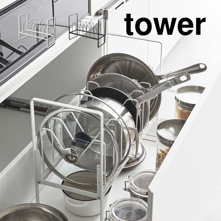 シンク下高さ調整鍋蓋&フライパン収納ラック 2段 タワー 山崎実業 5594 tower 台所 キッチン グッズ シンク下 収納 ...