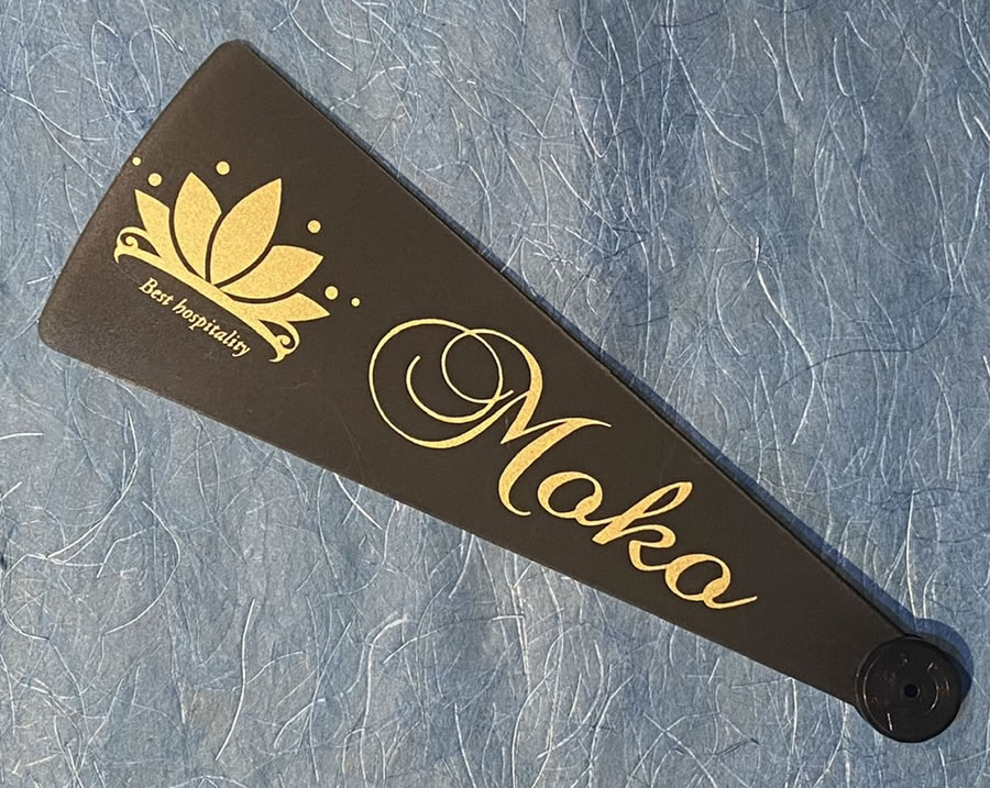 コロナ対策 飛沫防止扇子 黒色 ロゴ・文字金色 100本 ※店舗・会社のロゴが入ります 型代込(コロナ対策グッズ フェイスシールド...