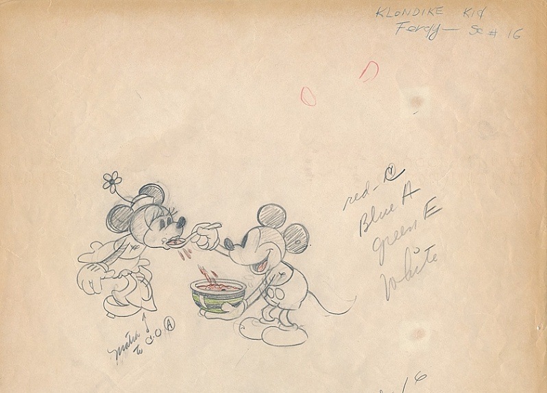「The Klondike Kid (ミッキーの黄金の街は大騒ぎ)」で使われた手描きドローイング原画