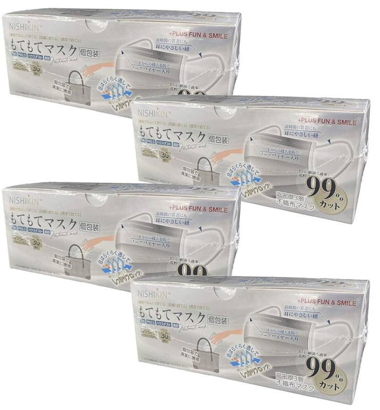 不織布マスク 使い捨て もてもてマスク ふつうサイズ 個包装 30枚入り×4【4個セット】送料無料