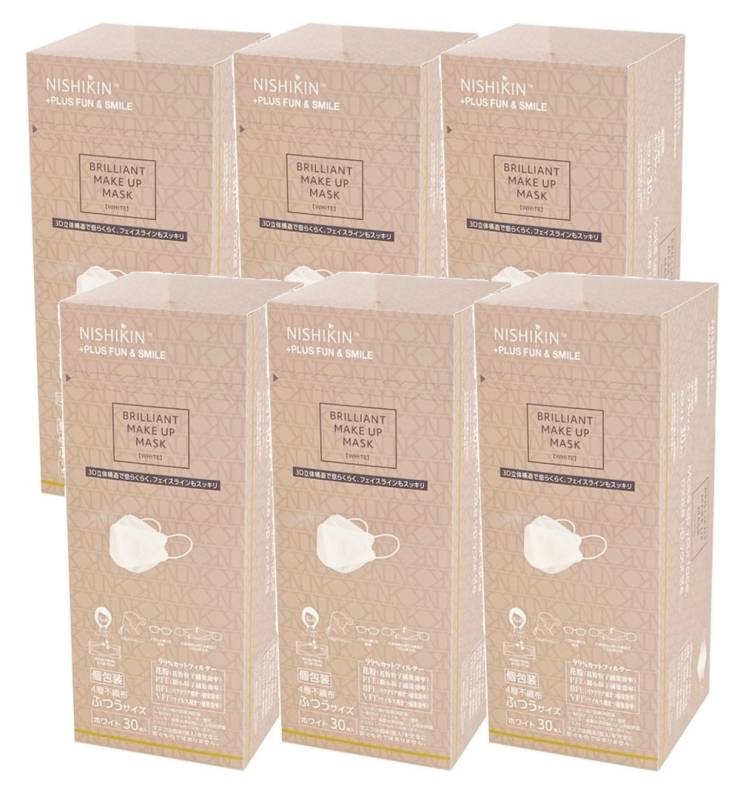 不織布マスク 使い捨て ブリリアントメイクアップマスク 白 ホワイト30枚入り×6【6個セット】送料無料 高密度4層フィルター ...