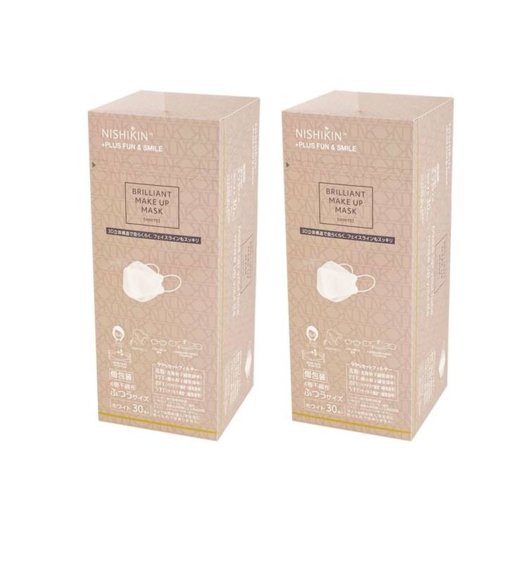 不織布マスク 使い捨て ブリリアントメイクアップマスク 白 ホワイト30枚入り×2【2個セット】送料無料 高密度4層フィルター ...