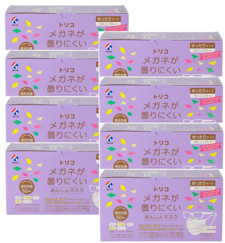不織布 マスク trico トリコ メガネが曇りにくいあんしんマスク 個包装 ゆったり 50枚×8【8個セット】送料無料 大きいサ...