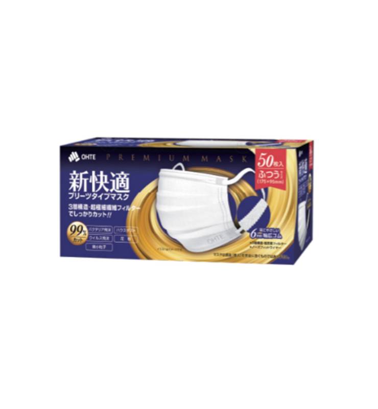 OHTE 新快適 プリーツ 不織布 マスク ふつう 50枚入×2【2個セット】送料無料 三国堂
