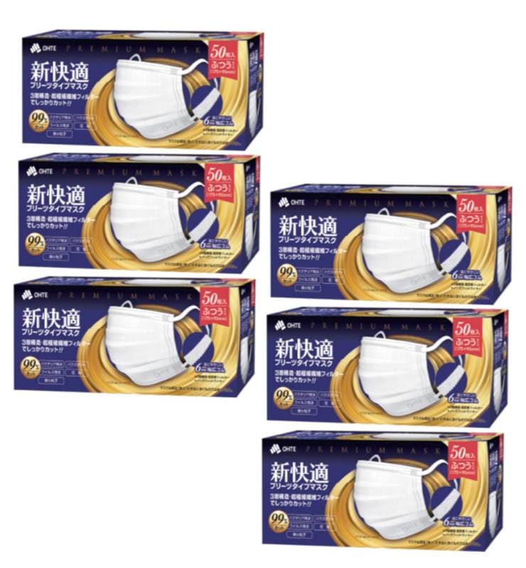 OHTE 新快適 プリーツ 不織布 マスク ふつう 50枚入×6【6個セット】送料無料 三国堂