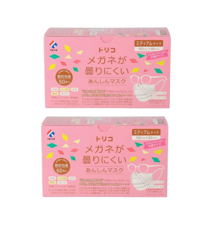 不織布 マスク trico トリコ メガネが曇りにくいあんしんマスク 個包装 ミディアム 50枚×2【2個セット】送料無料 小さい...