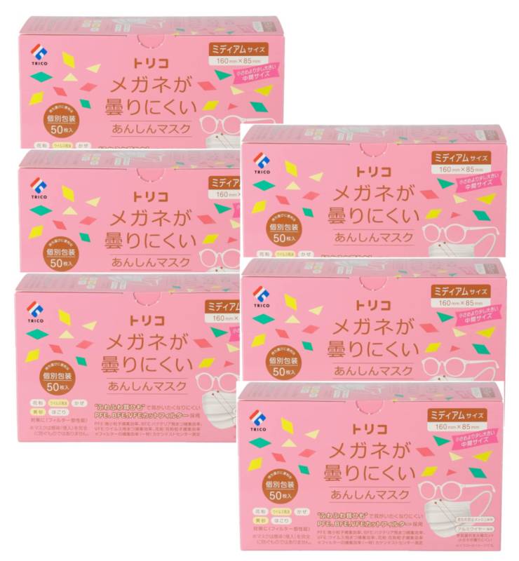 不織布 マスク trico トリコ メガネが曇りにくいあんしんマスク 個包装 ミディアム 50枚