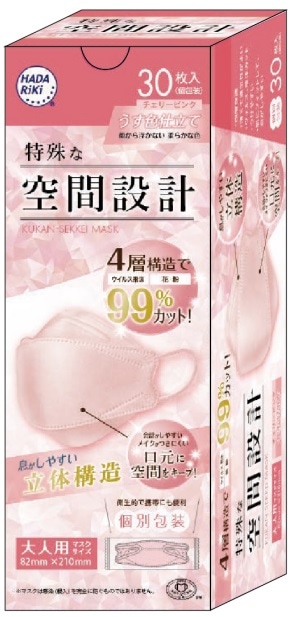 不織布マスク HADARIKI 空間設計マスク チェリーピンク 30枚入り 個包装 カラーマスク