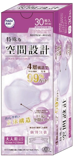 不織布マスク HADARIKI 空間設計マスク クールラベンダー 30枚入り 個包装 カラーマスク