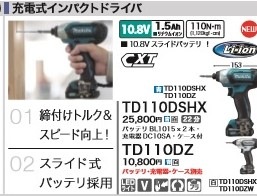 [税込新品]マキタ10.8V充電式インパクトドライバ-TD110DSHXバッテリ.充電器.ケース付