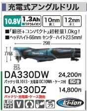 DIY女子も必見込新品]マキタ10.8V充電式アングルドリルDA330DZバッテリ・充電器・ケースなし】 マキタ 充電タイプ