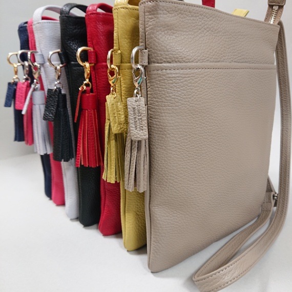 イタリアンレザー タッセル付サコッシュ ポシェット