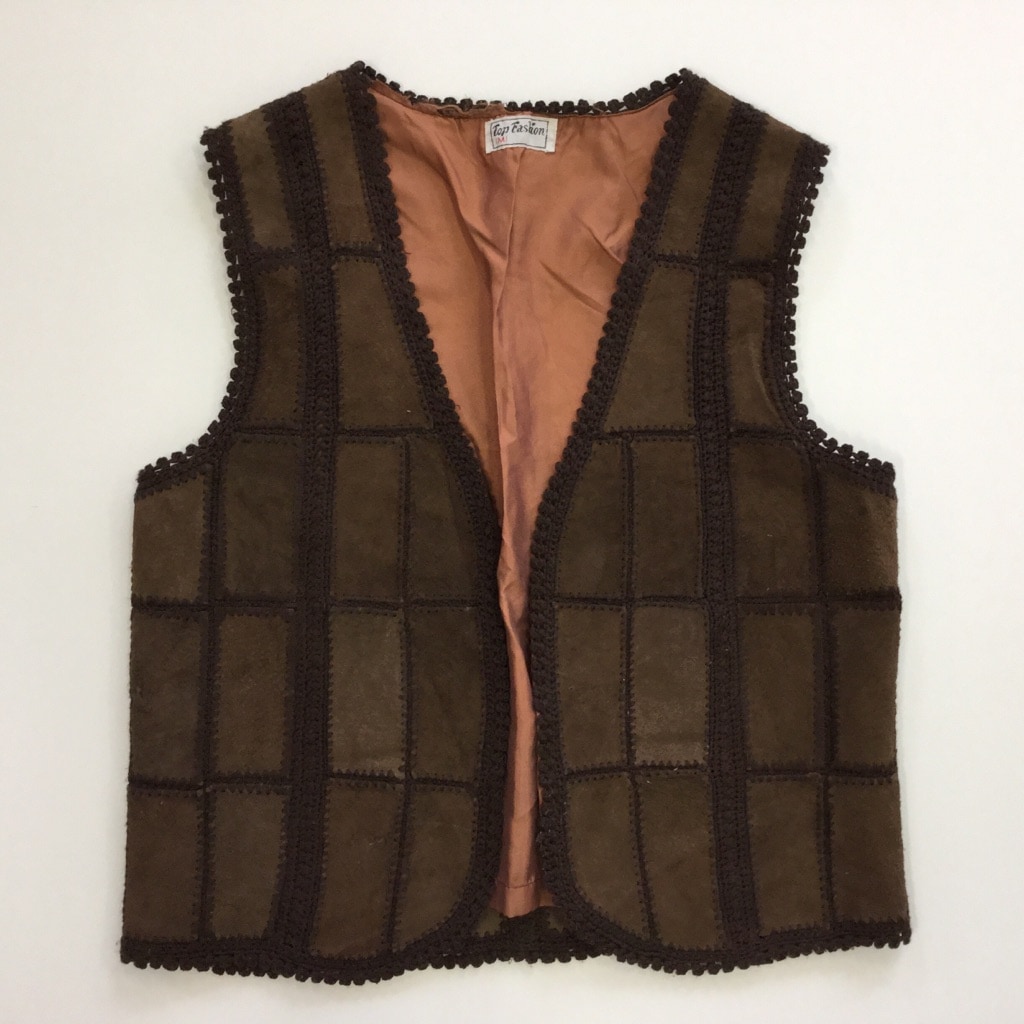 アメリカ古着 レザーベスト 送料無料 サイズM/茶 モダン 革 フォークロア ヒッピー パッチワーク レディース カジュアル US...