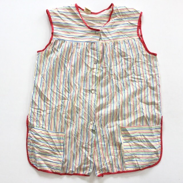 アメリカ直輸入 エプロン スモック 送料無料 レディース M/白xストライプ ベスト ノースリーブシャツ USA アメカジ 古着卸...