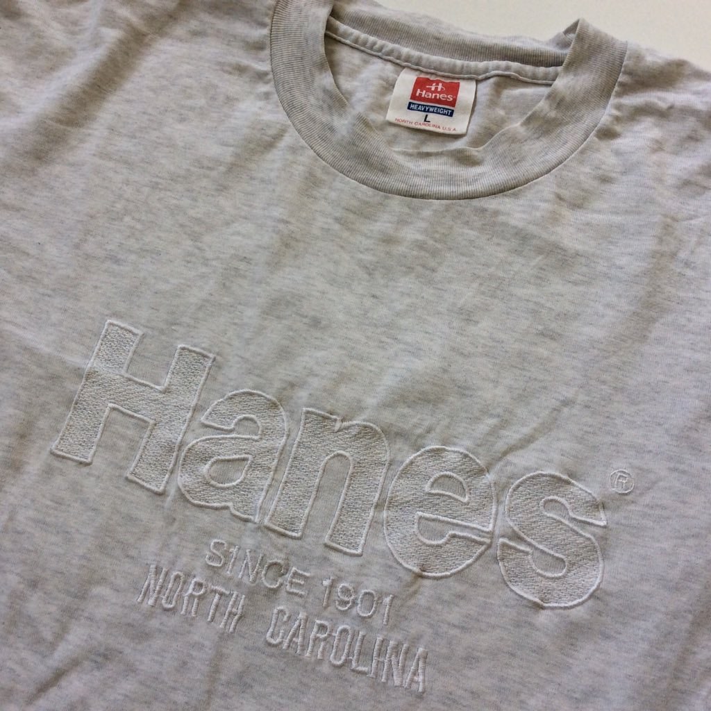 Hanes ヘインズ ボディメーカー 半袖Tシャツ 刺繍ロゴ 送料無料 L/霜降りグレー ブランド 国内古着 日本製 ダイワボウア...
