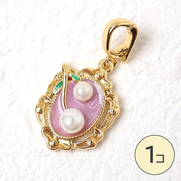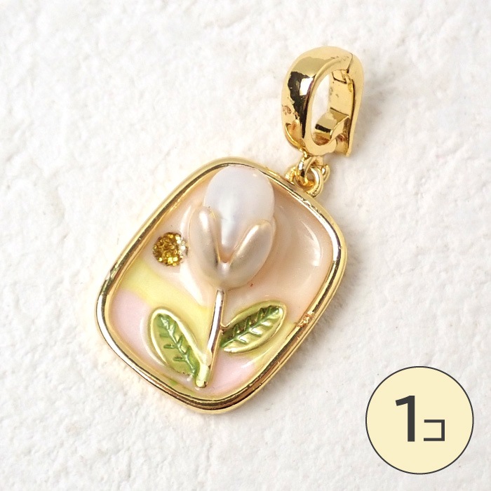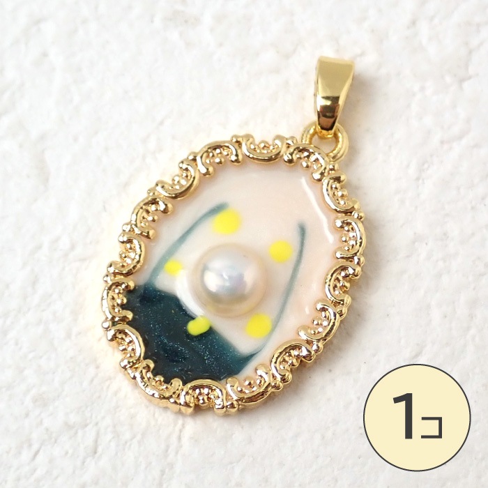 【淡水パール 絵画風チャーム】 トップ アート調 フラワー パールアクセサリー 1個売り
